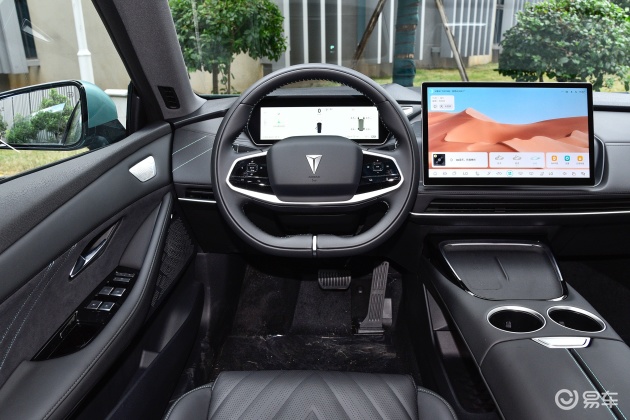 In the dark blue SL03, the interior shape has taken a unique route, and the overall design atmosphere is still relatively in place. The steering wheel design of the car is very fashionable and generous, equipped with functions such as manual up and down + front and rear adjustment of the steering wheel, which feels good. Let’s take a look at the central control. The car is equipped with a hard touch LCD central control screen, which makes the interior style impressive and looks dignified. Finally, let’s take a look at the dashboard and seats. The car is equipped with a sharp dashboard, which creates a sporty atmosphere. The car uses a mix of leather/fur materials to match the seats, which are wide and thick, and the overall comfort is good.
